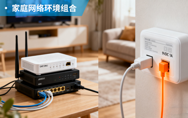 :如光猫(ONT/ONU)、ADSL Modem、路由器随附的电源,将220VAC市电转换为设备所需的低压直流电(如9VDC, 12VDC)。