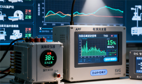 :在大型医疗建筑电力系统中,采用有源滤波器(APF) 和静止无功补偿装置(SVG) 来补偿谐波造成的无功功率,保护敏感医疗设备。