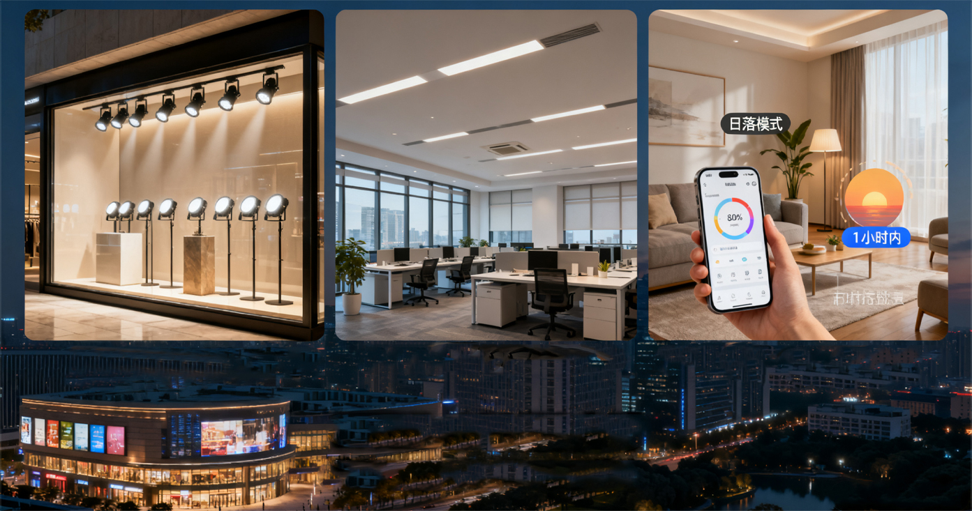 :调光电源支持智能控制,能够轻松集成到物联网照明系统中,实现远程调光、场景设置和能耗管理。特别适合商业照明、办公照明和家居照明等需要灵活调光的应用场景。